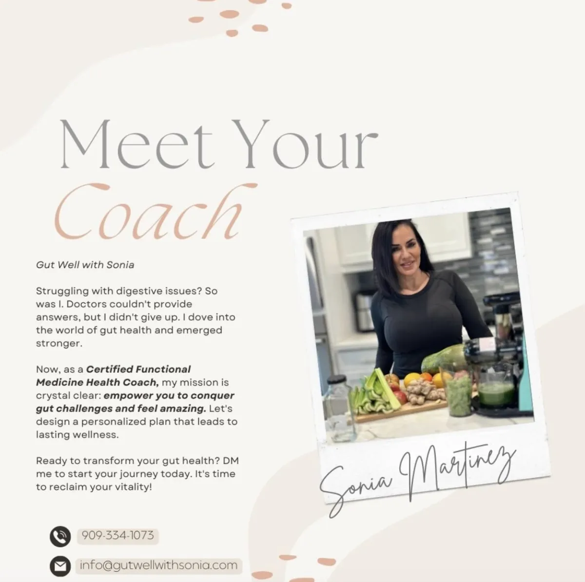 I'm Sonia, a Board Certified Functional Medicine Health Coach who is fiercely dedicated to gut health. I've personally battled through the frustrating and disruptive challenges of digestive issues (gut-health), feeling let down by doctors who couldn't provide answers. But I refused to accept defeat. Instead, I embarked on a mission to uncover the transformative power of a healthy gut microbiome.